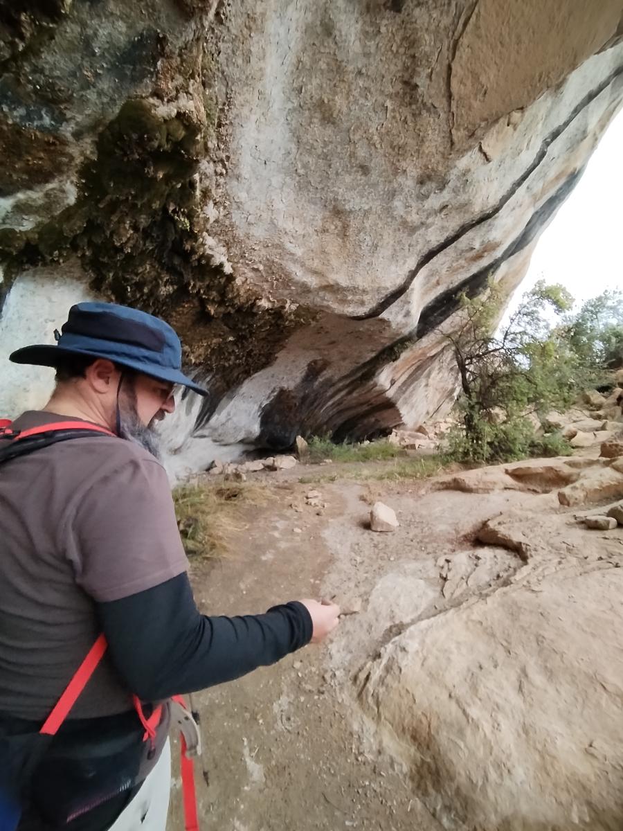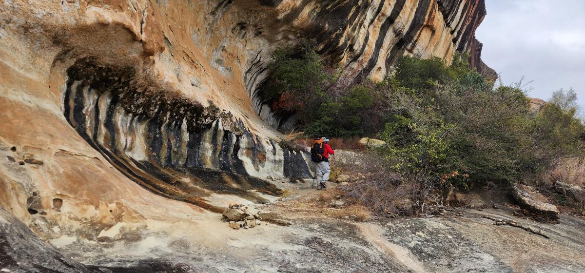 The second day was a beautiful walk starting with a little climb and then a meander through valleys and “koppies” / ridges, through a small water fall and some rivers. The first day ends at a cave which has some bushman paintings in it. Using cave is a very loose term as its more of a rocky overhang than a cave.