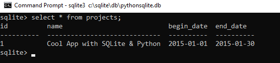 Finally, connect to the database via sqlite3 shell and query data from the projects and tasks tables to check if the data has been inserted successfully. Open a command prompt or terminal as depicted below: