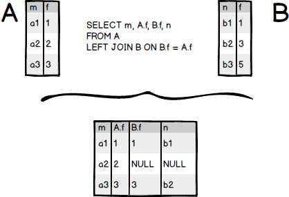 See the following illustration of the LEFT JOIN clause between the A and B tables.